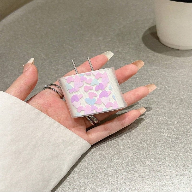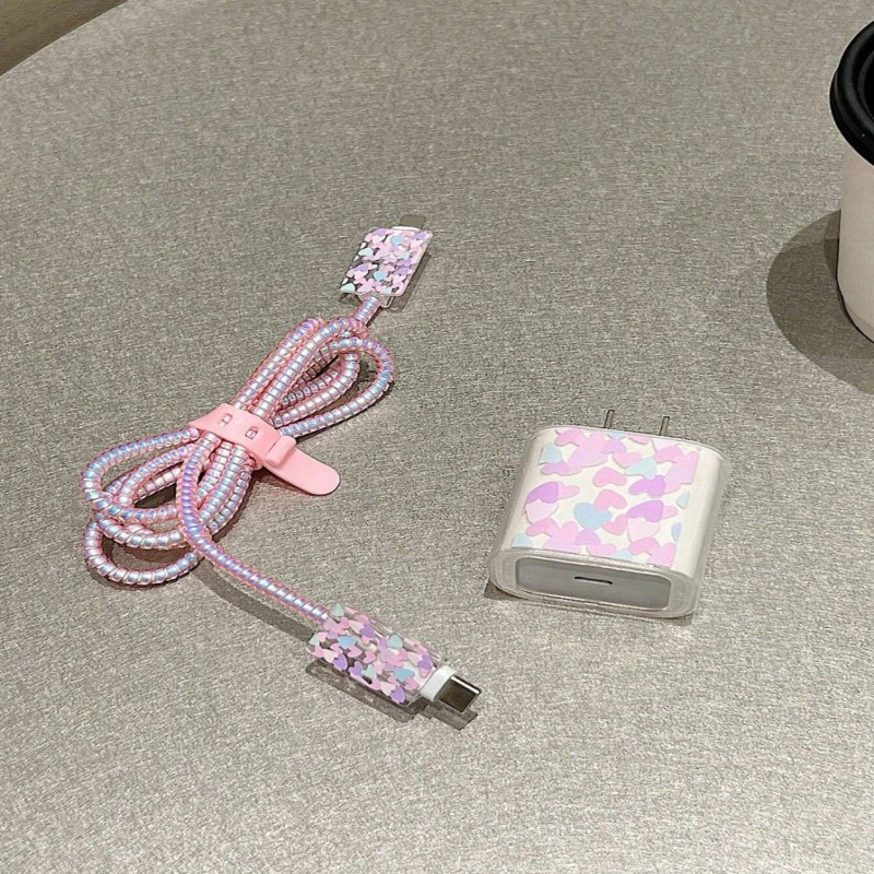 Set de 5 piezas de cargador de teléfono de 20W/18W con diseño de corazón multicolor, protector de ca