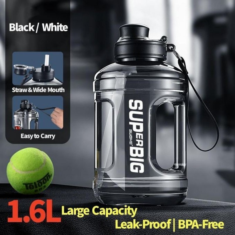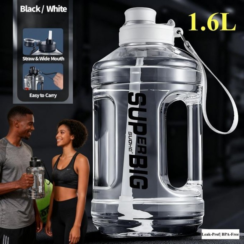 Yiliker Water Bottle for Gym – 1.6L Leak-Proof Sports Bottle with Handle & Straw, BPA Free, Larg
