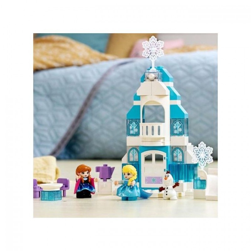 Join Disney’s Anna, Elsa and Olaf at the LEGO® DUPLO® l Disney 10899 Frozen Ice Castle to share imaginative play and precious developmental milestones with your preschooler. As toddlers role-play with their favourite Disney Frozen characters, they improve their language and fine motor skills, and develop social and emotional awareness. Talk about Elsa's relationship with her sister Anna. Enjoy open-ended creative fun with Olaf the snowman. With a multicoloured light brick feature illuminating the castle at the push of a button, you and your little one will have endless enjoyment recreating scenes from Disney’s Frozen movie and dreaming up stories of your own with this sparkling Ice Castle toddler toy building set.